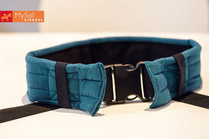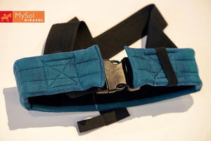 Mit Hilfe unseres Schnallenhüftgurtes kannst Du mit wenigen Handgriffen den MySol® von einem Mei Tai in eine Halfbuckle Trage verwandeln. Ebenso kannst Du den Schnallenhüftgurt für unseren WrapMysol verwenden.